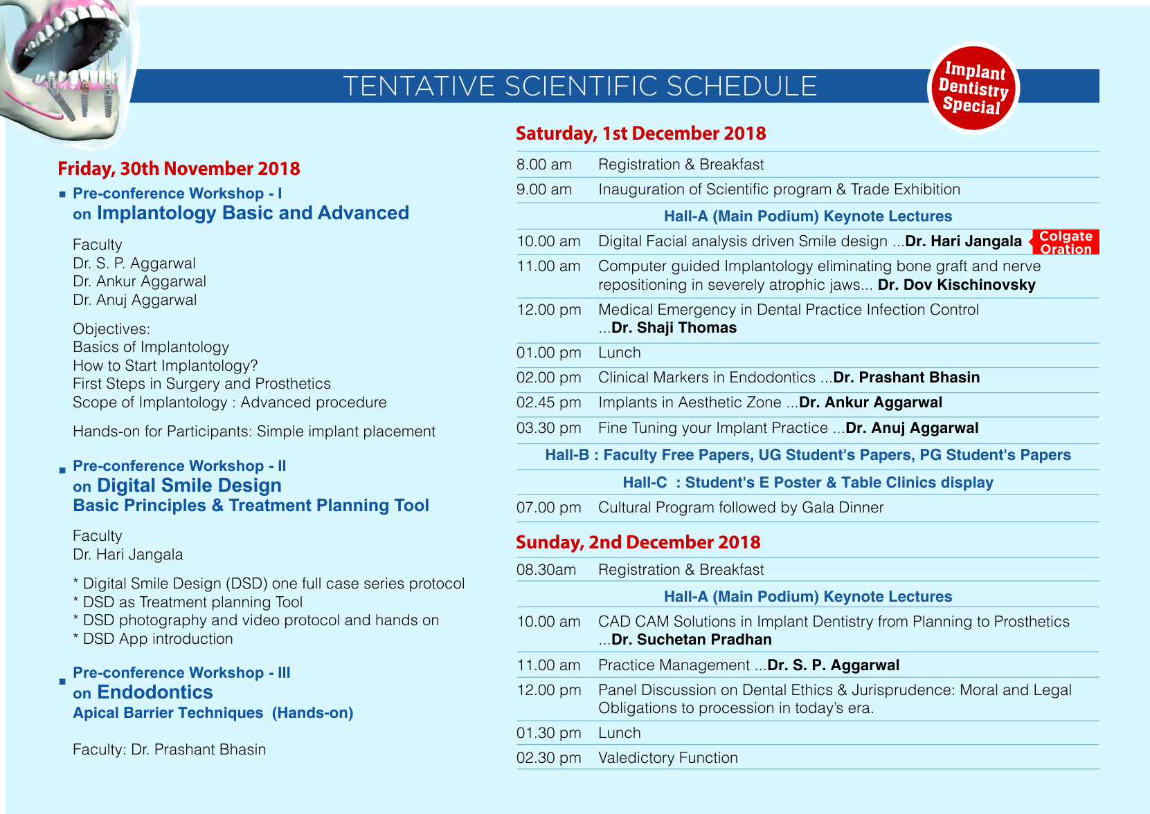Pre-conference Workshops on Implantology, Digital dentistry & Endodontics